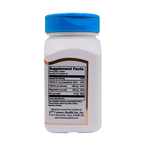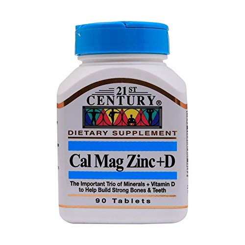 Calcium, Magnesium and Zinc plus Vitamin D help build healthy bones and teeth. This important trio +D also helps to maintain normal heart and muscle functions. 21st Century gives you 100% of the recommended daily value in three easy-to-swallow Cal Mag Zinc +D tablets.