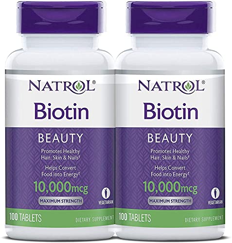 Description:;BeautyPromotes Healthy Hair, Skin & NailsHelps Convert Food into EnergyMaximum StrengthVegetarianDietary SupplementNatrol Biotin 10,000 mcg:Promotes healthy hair, radiant skin and stronger nailsHelps support energy metabolism and aids in the conversion of food into energyClinical studies have shown that those deficient in Biotin can experience hair loss and brittle nails.Other Ingredients: Microcrystalline cellulose, stearic acid, magnesium stearate, silicon dioxide, methylcellulose, cellulose gum, glycerin.No : Milk, egg, fish, crustacean shellfish, tree nuts, peanuts, wheat, soybeans, yeast, artificial colors or flavors, added sugar or preservatives.Suggested Use : Take 1 tablet, one time daily, with a meal.Brand : NatrolProduct Size : 200 TabletsTargeted Group : UnisexType : Food SupplementNumber of Servings : 200Product Form : TabletsServing Size : 1 TabletAre batteries needed to power the product or is this product a battery : NoIs this a Dangerous Good or a Hazardous Material, Substance or Waste that is regulated for transportation, storage, and/or disposal? : NoExpirable : Yes